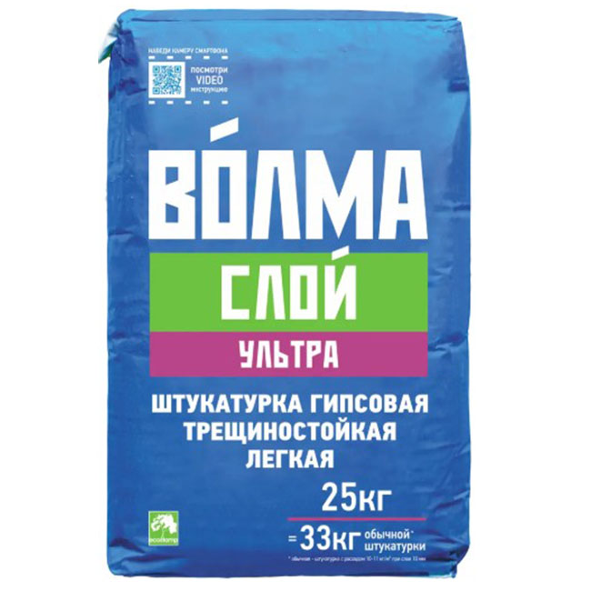 Волма Слой Ультра — гипсовая штукатурка для ручного нанесения, предназначенная для выравнивания стен и потолков внутри помещений с нормальной влажностью. Смесь отличается повышенной пластичностью, легко наносится и разравнивается, позволяя быстро получить ровную поверхность без трещин и усадки.